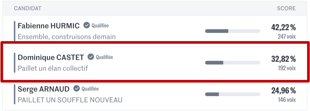 Ce résultat montre que beaucoup d’entre vous partagent notre conviction : Paillet mérite mieux qu’une gestion approximative et des promesses irréalistes. L’avenir de Paillet ne doit pas se décider dans l’immobilisme. Notre commune a besoin de sérieux, de bon sens et d’un projet solide.